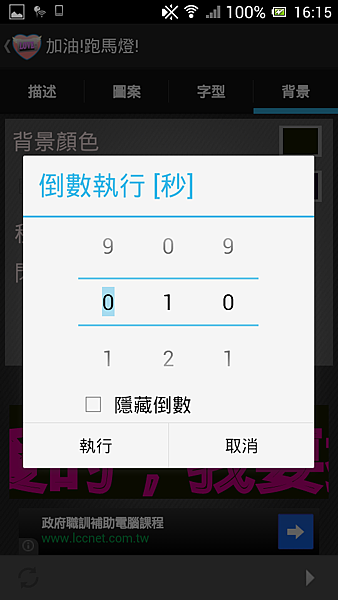 先算好對方大概多久後會回到座位上,確認"執行"開始倒數跑馬燈!