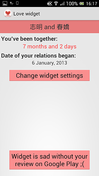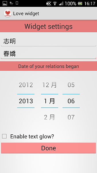 輸入兩人名字或暱稱,以及交往開始的日期,DONE!