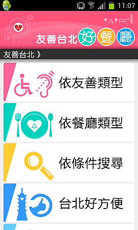 《友善台北好餐廳》是由中華民國殘障聯盟、罕見疾病基金會和國立交通大學數位創意與行銷策略實驗室,一同討論、設計出的一款APP,