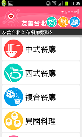 進入《友善台北好餐廳》的首頁,就可以看到不同類型的分類,就讓我們一起來看看吧!!