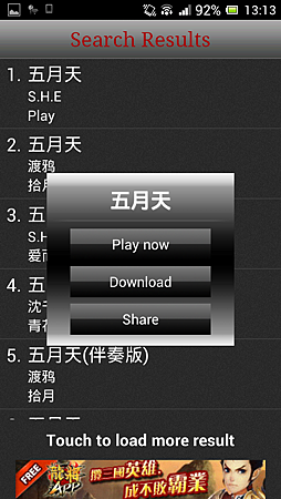接著,畫面會出現五月天的歌曲,曲目雖然不是很多,但都可以線上收聽或下載收藏喔!
