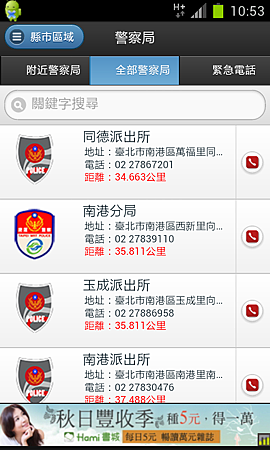 可以看到包括警察局的電話、地址、距離及路線導航。
