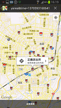 首先是,「附近警察局」,系統會先搜尋你目前所在位置,再以列表的方式,將週遭的警察局列出。