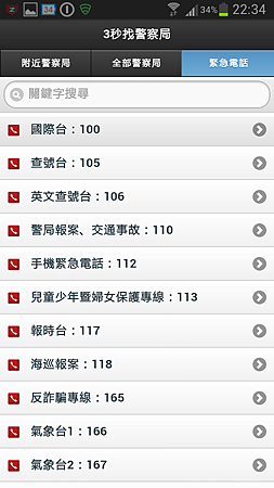 而除了可以找到各分局的資料外,《3秒找警察局》也提供了緊急電話的資訊,讓民眾在狀況發生時使用。