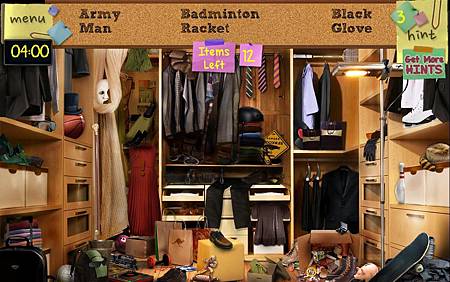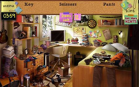 每一道關卡都會在左上角有時間限制,上方共有三組英文單詞,就是要尋找的物品,將上述的單詞翻譯成中文,再從凌亂的畫面中,點選該項物品。