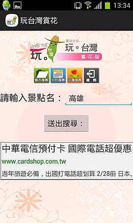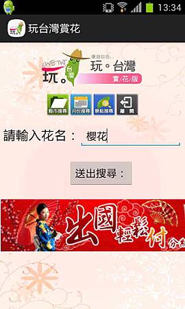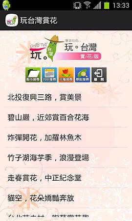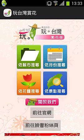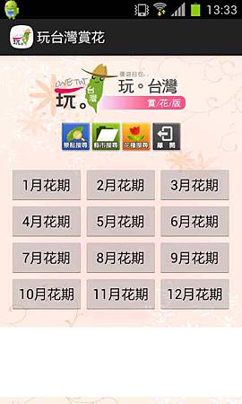 《玩台灣-賞花版》分別可以「縣市」、「月份」、「花種」及「景點」,四種分類來進行全台賞花資訊的搜尋。