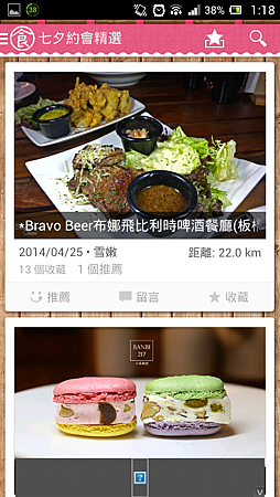 看首圖一打開APP立馬出現選單,還有情人節精選的七夕約會地點,點進去可以看到美食部落客介紹的食記喔!(照片都拍得好美