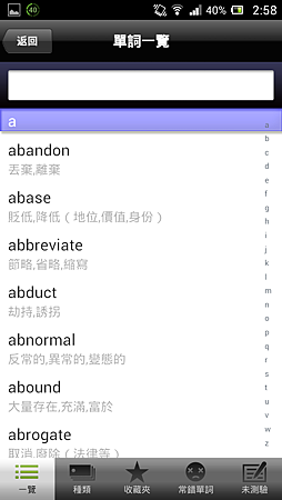 接著是「單詞一覽」,由A~Z排列,數量龐大要花好幾天才能看完呢