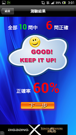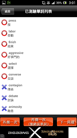 但,不要忘記按下一步看自己錯的單字是什麼,以避免再次答錯。