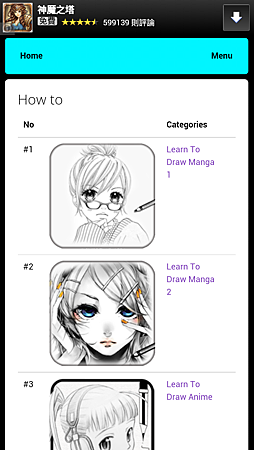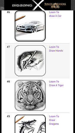 接著會看到一連串的教畫類別,從最常見的如何畫漫畫人物,到動畫、汽車、動物等,種類豐富,小編最想學的是最基本的如何畫漫畫人物