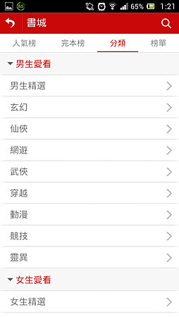 APP很貼心的地方是已經分好男女生愛看的類別囉!