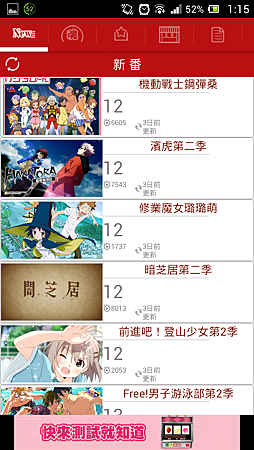 打開APP可以看到一連串最新的日本動畫,小編剛剛才發現原來灌籃高手也重製作了耶!